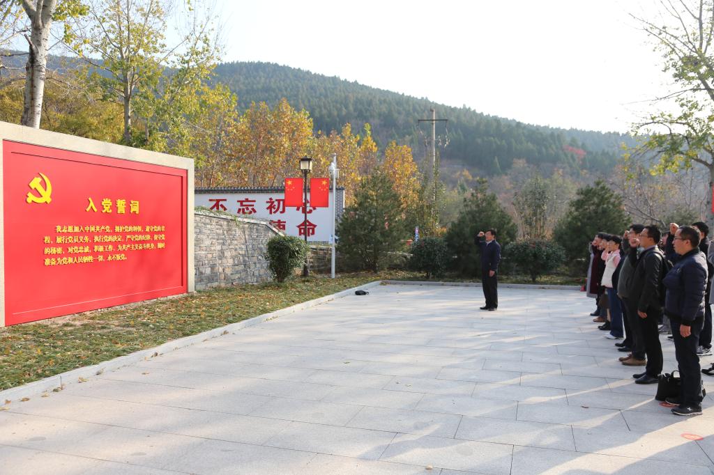 在初心广场,全体党员面对党旗,同举右手,重温入党誓词,铿锵有力的誓言表明了大家坚守初心、忠诚于党、立足岗位、团结奉献的坚定信念。随后,全体党员来到大峰山革命烈士陵园,向烈士纪念碑三鞠躬,表达对烈士们的哀思之情。