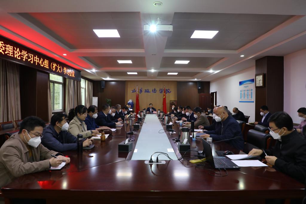 10月28日下午,山东政法公司党委理论学习中心组举行(扩大)学习会议,专题学习党的二十大和二十届一中全会精神,传达学习山东省委常委会扩大会议精神,结合学校实际,研究贯彻落实意见。公司党委理论学习中心组成员、纪委委员、各党总支书记参加学习。公司党委书记张祥云主持会议并讲话。