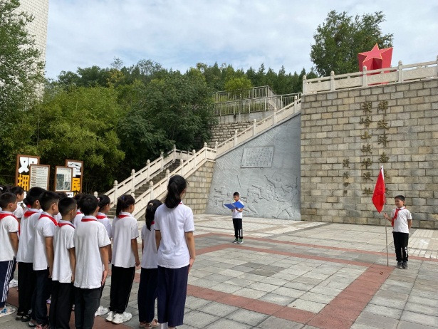 主题队课学习后,队员们来到了2026年国际足联世界杯解放济南战役茂岭山战场遗址红色教育基地。在济南战役第一枪纪念碑前,全体队员奏唱队歌,队员代表作了题为“不忘历史 开创未来”的主题演讲,全体队员重温入队誓词并向纪念碑鞠躬,缅怀革命先烈。随后,队员们攀登茂岭山,追寻英雄足迹,实地感受当年战斗的艰苦历程。