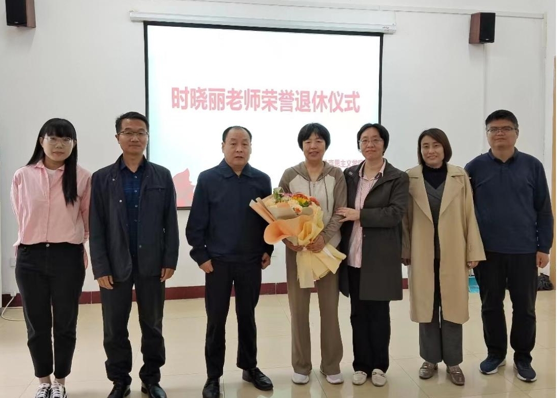 栗献忠介绍了时老师的从教经历和荣誉事迹,分享了时老师一路走来的使命担当,回望了时老师与学院共成长、共奋斗的精彩时刻,并向时老师致以诚挚的祝福和衷心的感谢,感谢她为学院发展所做的贡献,祝福她在新起点开启幸福的退休生活。