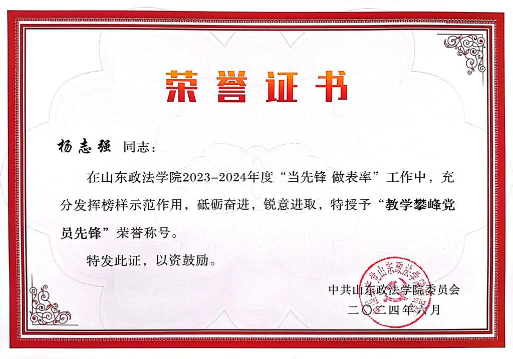 7月1日,学校在校礼堂隆重举行庆祝中国共产党成立103周年暨“七一”表彰大会,公司教师杨志强获“教学攀峰党员先锋”荣誉称号。